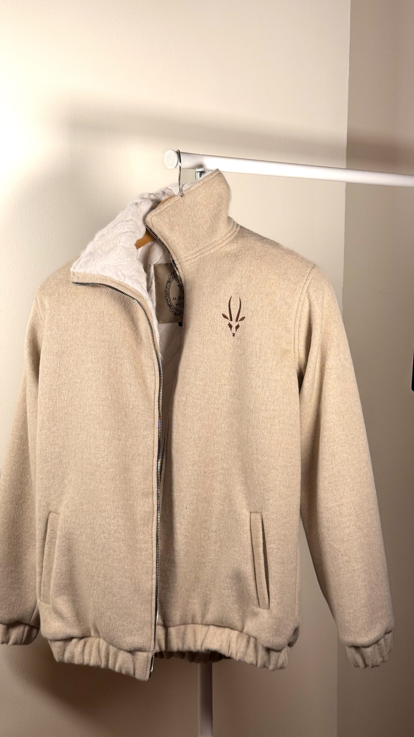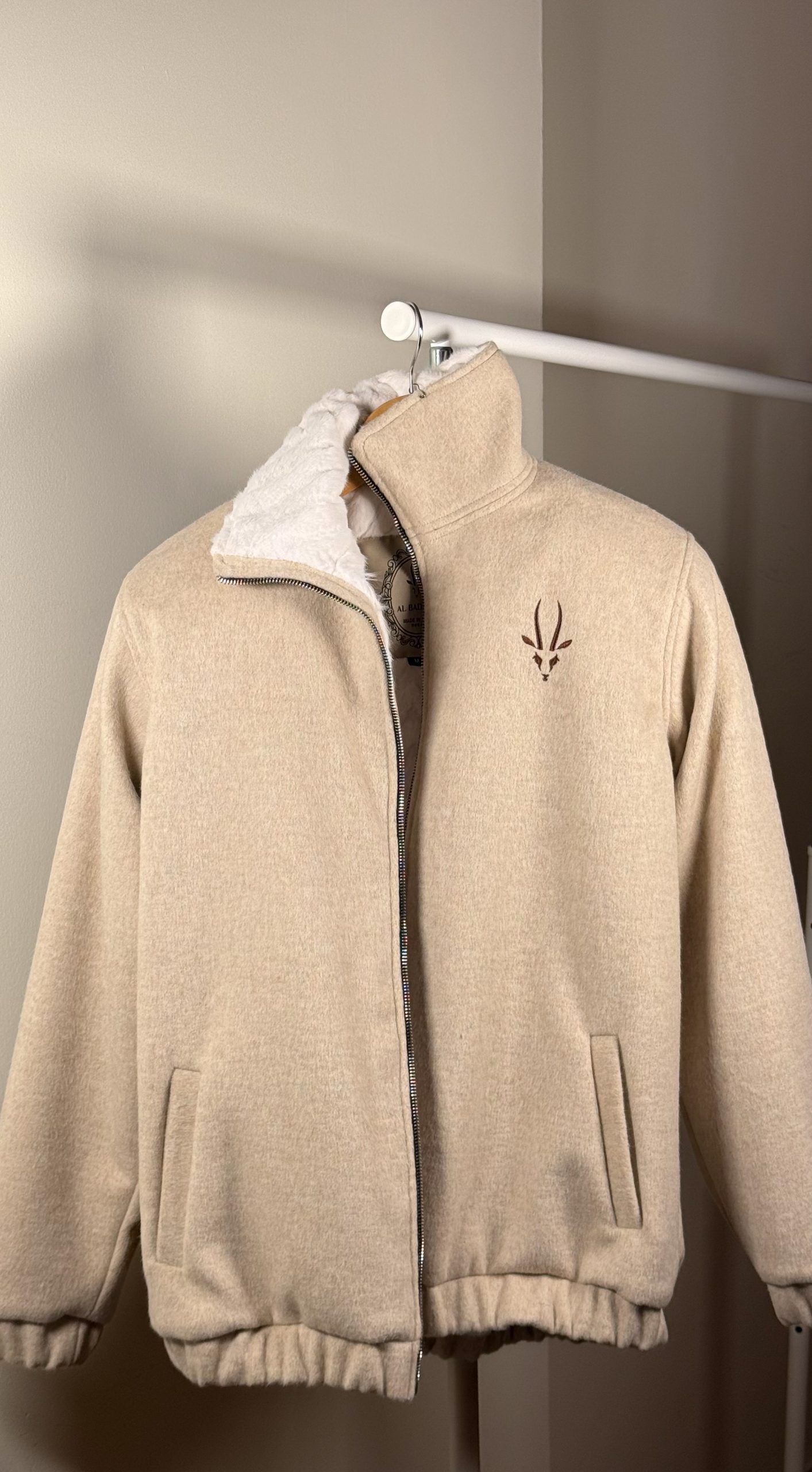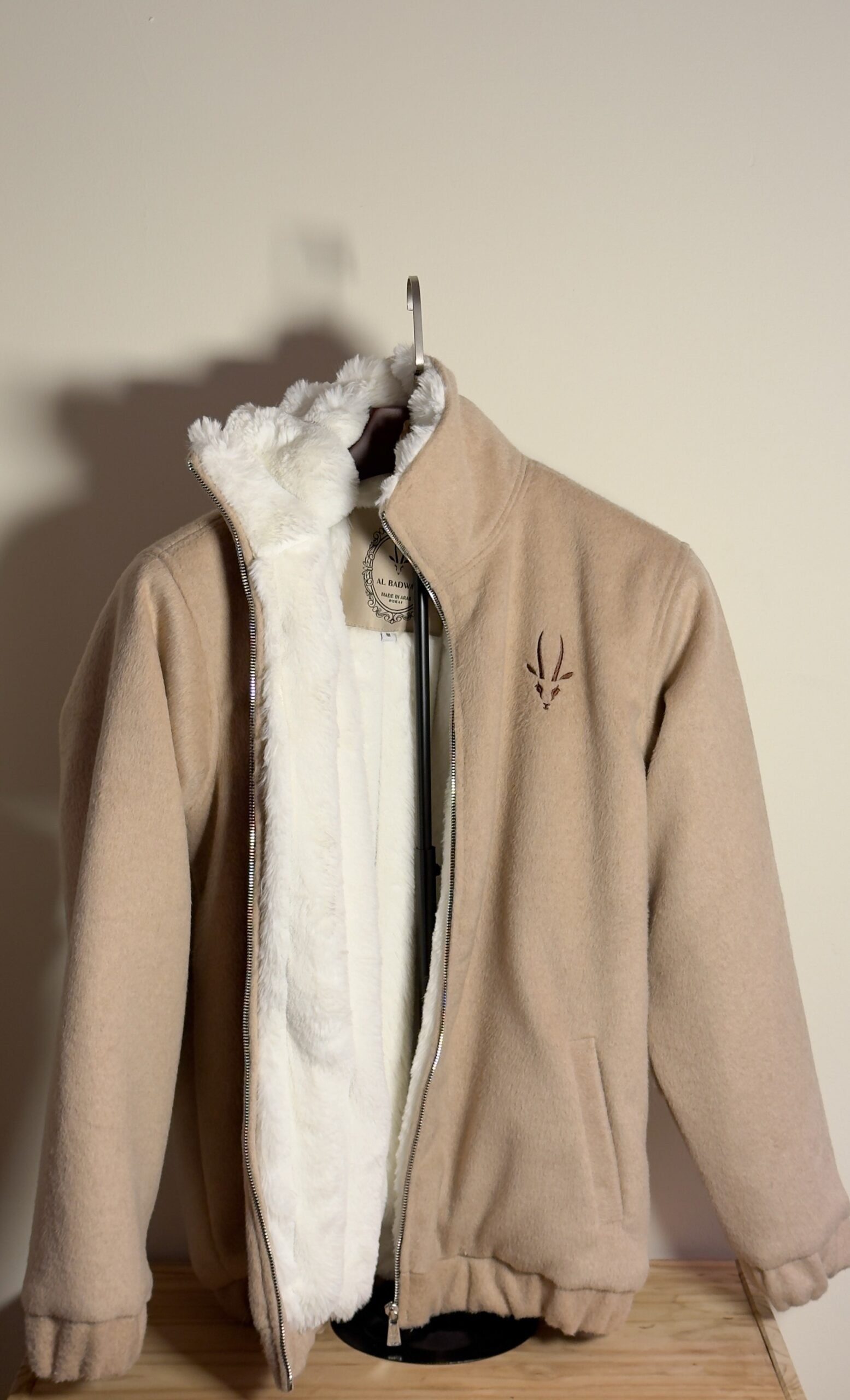 جاكيت مع سحاب القماش الخارجي كشمير و الباطنة الداخلية من الفرو الناعم