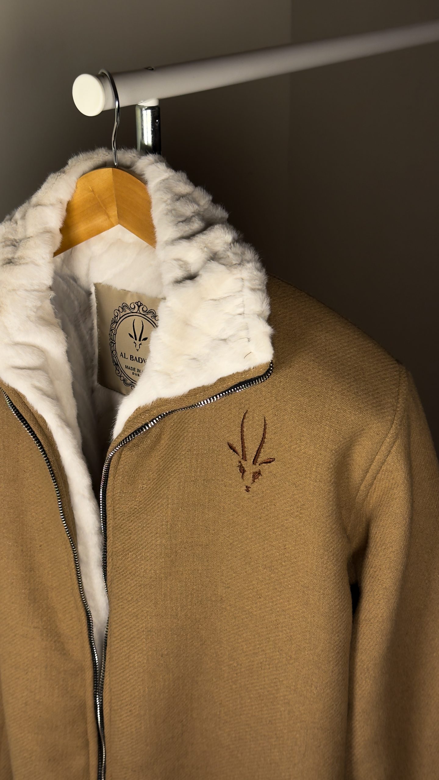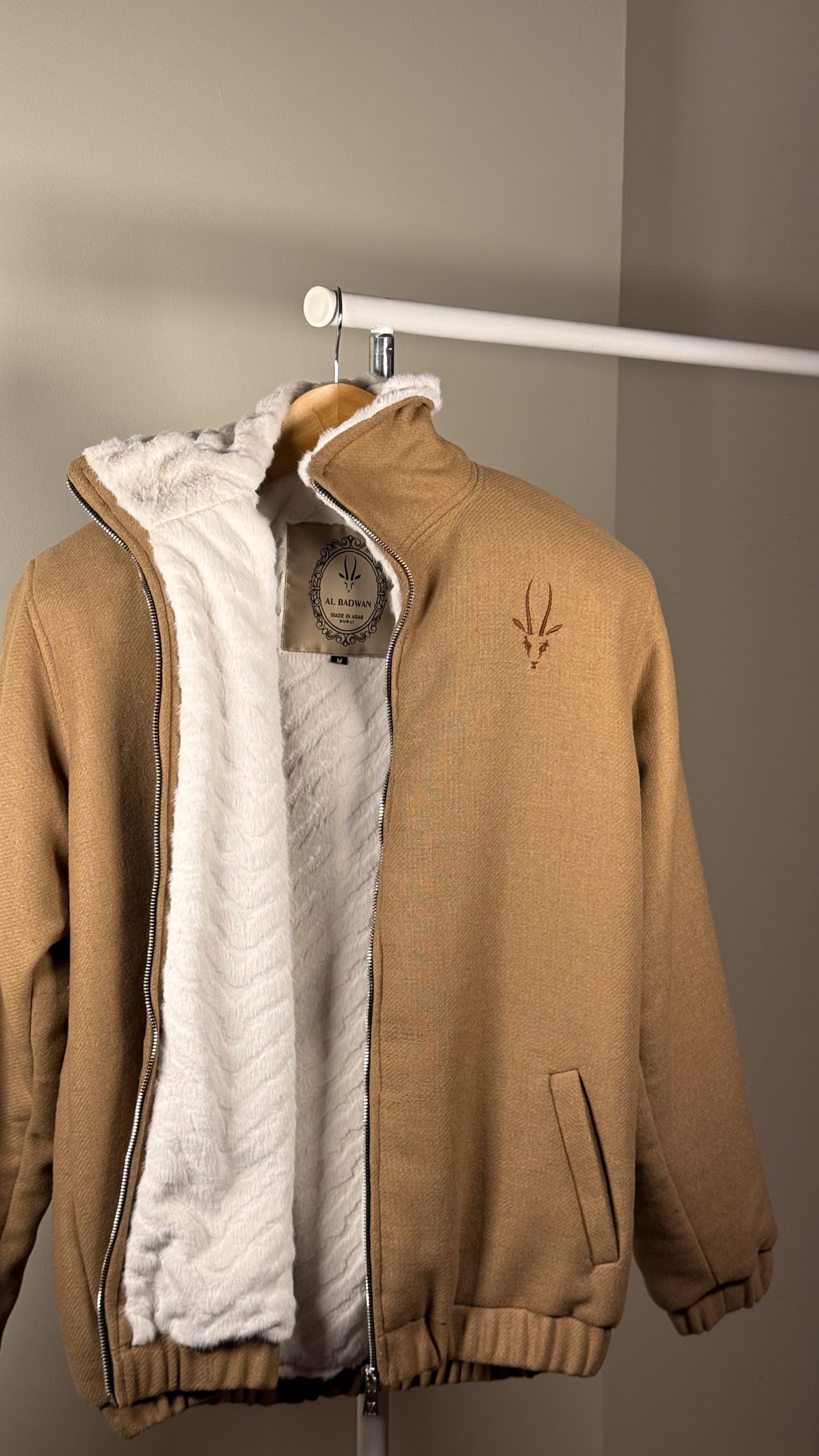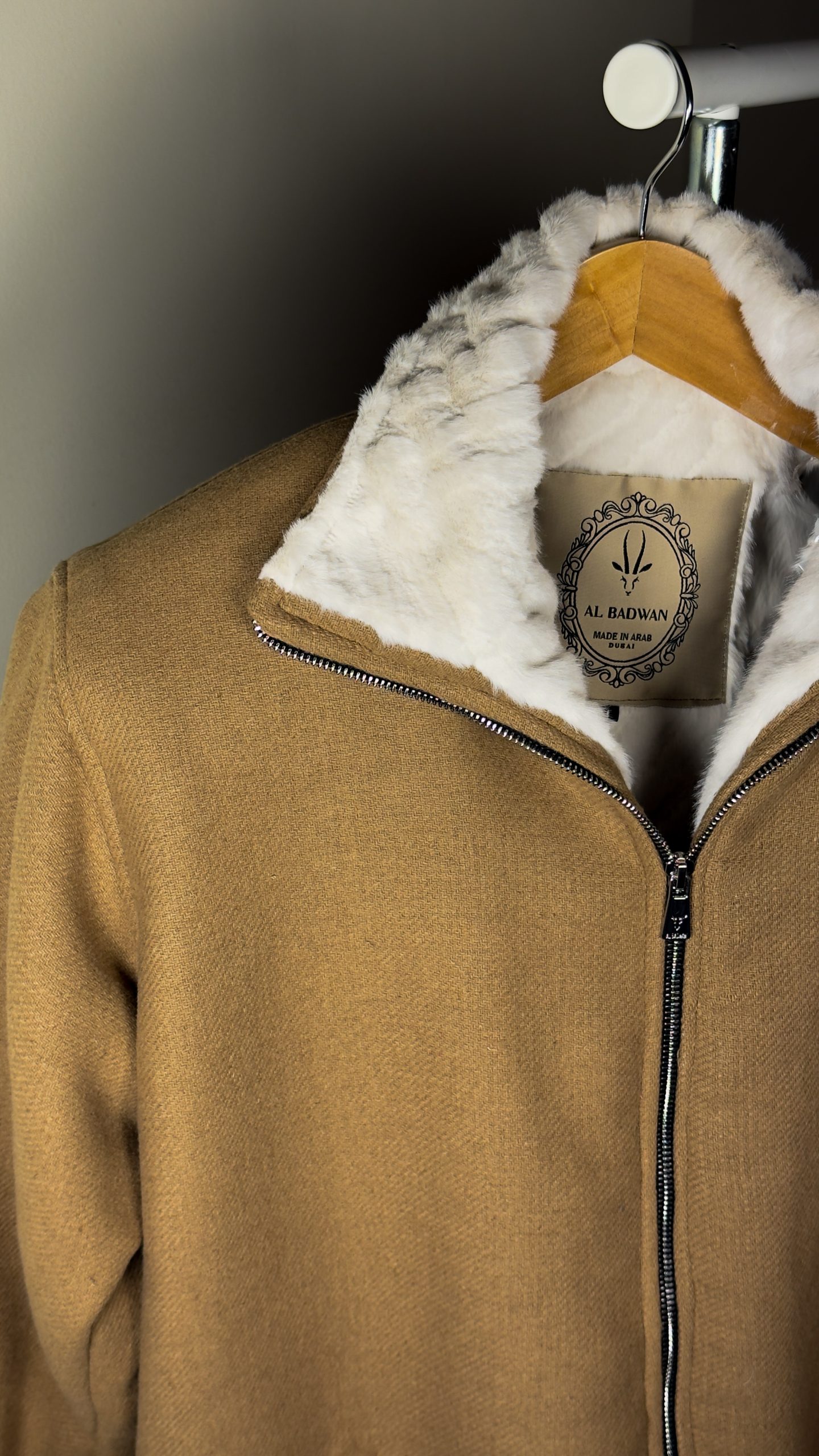 جاكيت مع سحاب اللون  رملي البطانة الداخلية فرو ناعم